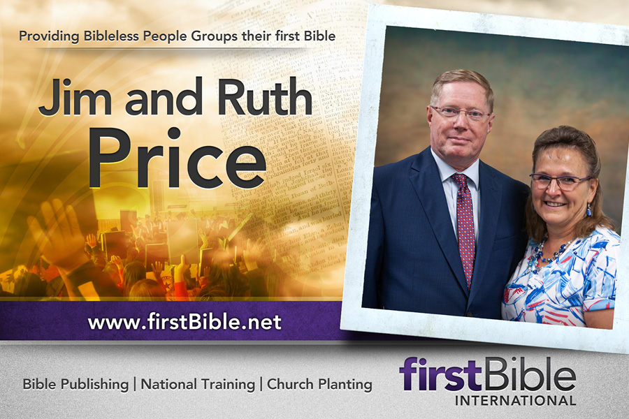 Brother Price was saved when he was twenty-three years old. He was not raised in a Christian family, but he heard the Gospel a number of different times through many believers. He finally submitted to the Lord and was saved in 1983. In 1986, at a missions conference in Cold Lake, Alberta, he surrendered to the call of God for full-time service. Ruth was raised in a Christian home, and was saved at the age of five. She grew up in an atmosphere of serving others in many ways, from entertaining the many visitors who came to their home, to singing with her family in retirement homes and on native reserves. Brother Price has a Bachelor of Theology degree from Bible Baptist College in Simcoe, Ontario, as well as a Master of Arts degree from Indiana Baptist Seminary, Greenwood, Indiana. He pastored Vision Baptist Church in Leduc, Alberta for twenty-five years and was heavily involved in the Bearing Precious Seed ministry before the Lord called him and his wife, Ruth, to join First Bible International in January 2021. The Prices travel to churches to raise an awareness of the responsibility and the need to get the Bible translated into the language of people groups who do not yet have a reliable and readable copy of God’s Word. They also seek to challenge young people with the opportunity of full-time service for the Lord either on the mission field, or in the pastorate. Jim and Ruth also strive to be an encouragement to the pastor, his wife and family, and to the churches in which they present their ministry.
